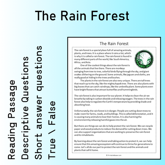 The Rain Forest | Reading Comprehension Passage Printable Worksheet