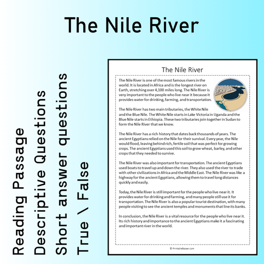 The Nile River | Reading Comprehension Passage Printable Worksheet