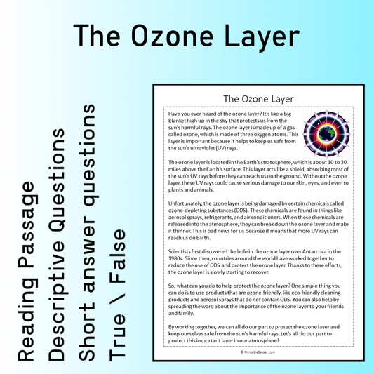 The Ozone Layer | Reading Comprehension Passage Printable Worksheet