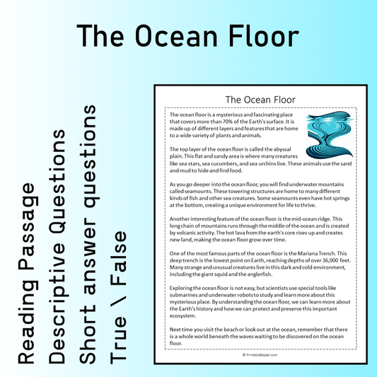 The Ocean Floor | Reading Comprehension Passage Printable Worksheet