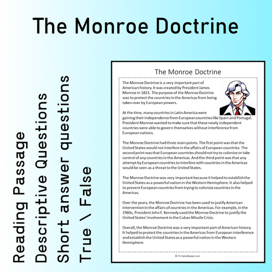 The Monroe Doctrine | Reading Comprehension Passage Printable Worksheet