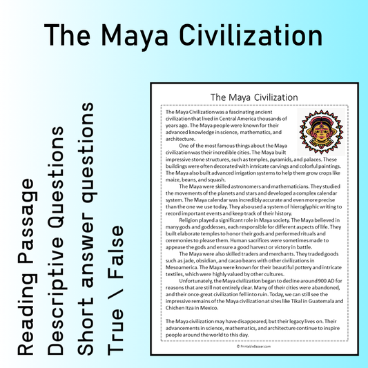 The Maya Civilization | Reading Comprehension Passage Printable Worksheet