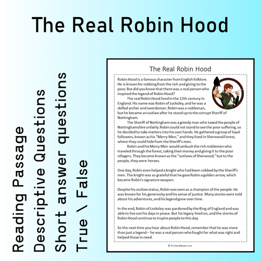 The Real Robin Hood | Reading Comprehension Passage Printable Worksheet