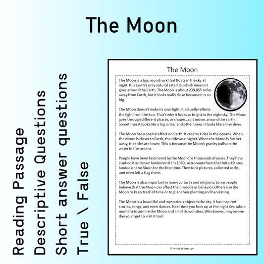 The Moon | Reading Comprehension Passage Printable Worksheet