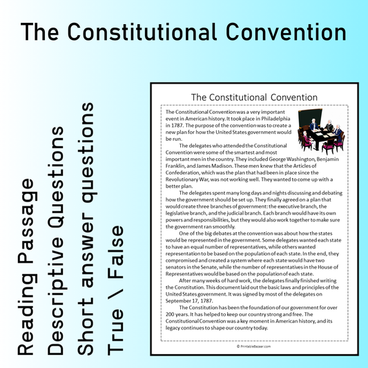 The Constitutional Convention | Reading Comprehension Passage Printable Worksheet