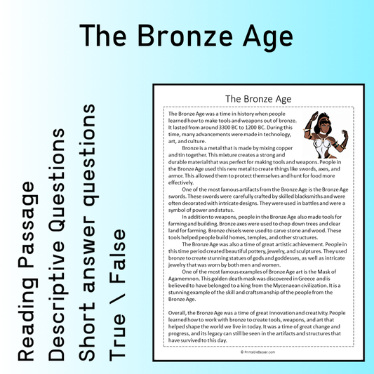 The Bronze Age | Reading Comprehension Passage Printable Worksheet
