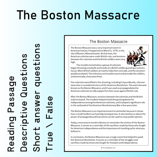 The Boston Massacre | Reading Comprehension Passage Printable Worksheet