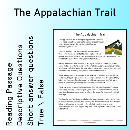 The Appalachian Trail | Reading Comprehension Passage Printable Worksheet