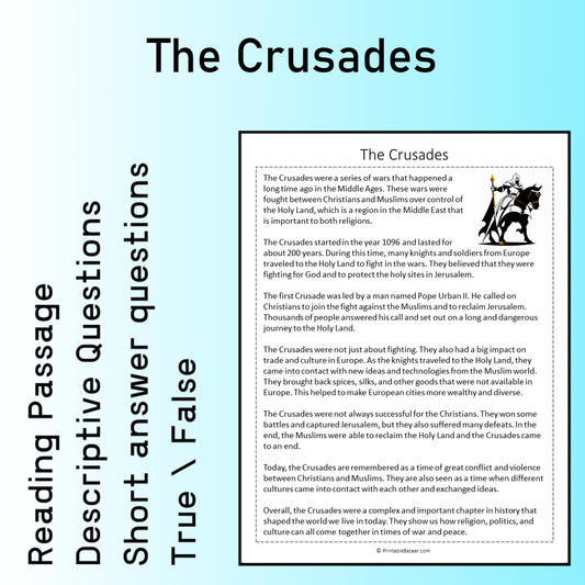 The Crusades | Reading Comprehension Passage Printable Worksheet