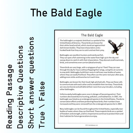 The Bald Eagle | Reading Comprehension Passage Printable Worksheet