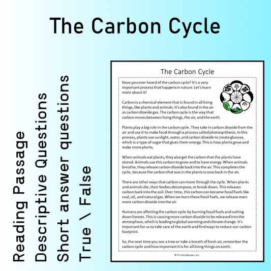 The Carbon Cycle | Reading Comprehension Passage Printable Worksheet