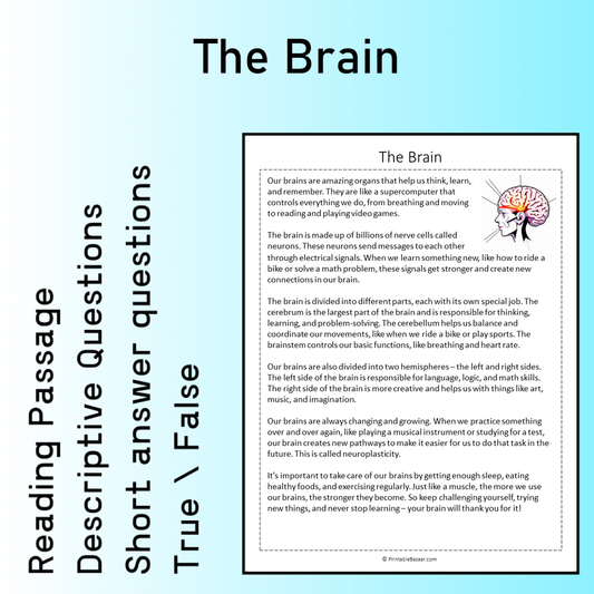 The Brain | Reading Comprehension Passage Printable Worksheet