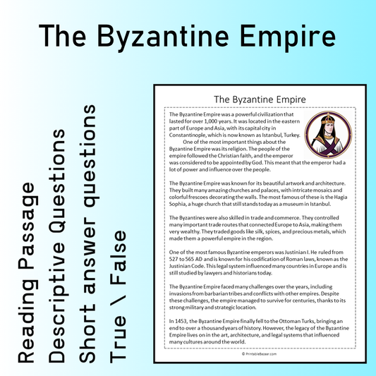 The Byzantine Empire | Reading Comprehension Passage Printable Worksheet