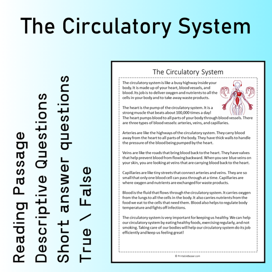The Circulatory System | Reading Comprehension Passage Printable Worksheet