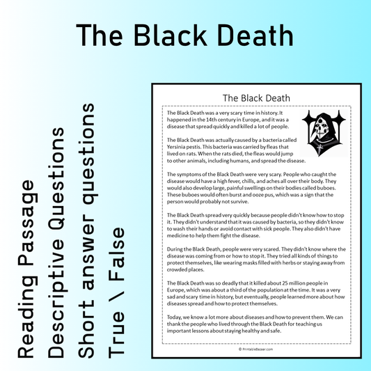 The Black Death | Reading Comprehension Passage Printable Worksheet