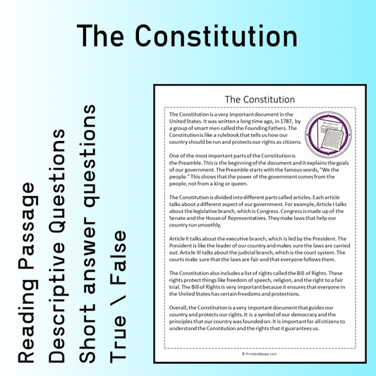 The Constitution | Reading Comprehension Passage Printable Worksheet