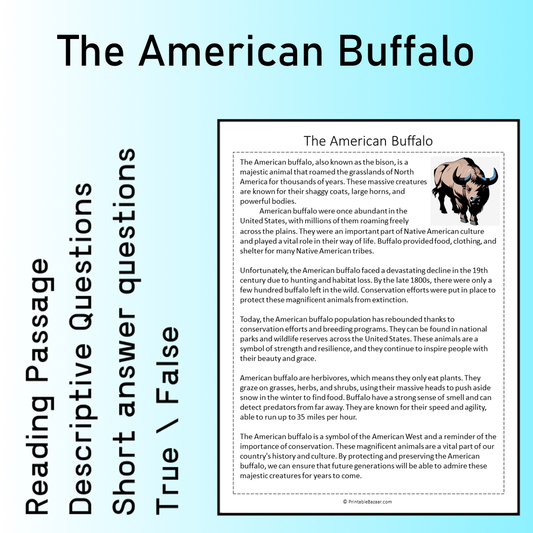 The American Buffalo | Reading Comprehension Passage Printable Worksheet
