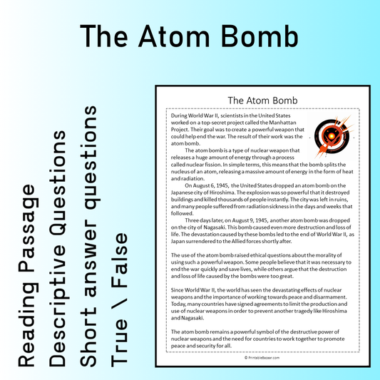 The Atom Bomb | Reading Comprehension Passage Printable Worksheet
