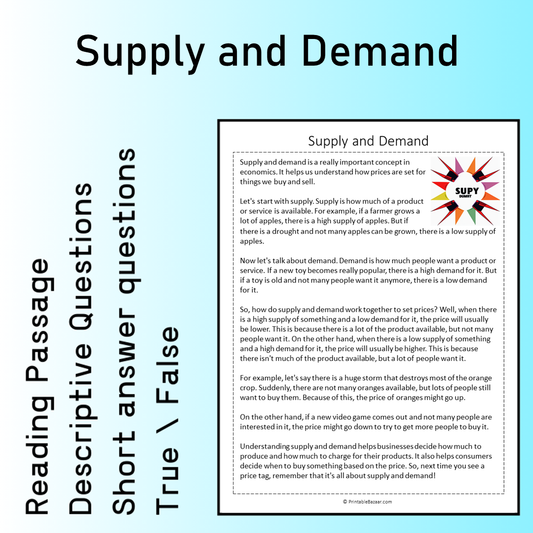 Supply and Demand | Reading Comprehension Passage Printable Worksheet
