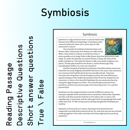 Symbiosis | Reading Comprehension Passage Printable Worksheet