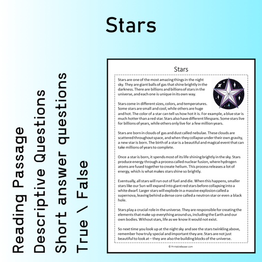 Stars | Reading Comprehension Passage Printable Worksheet
