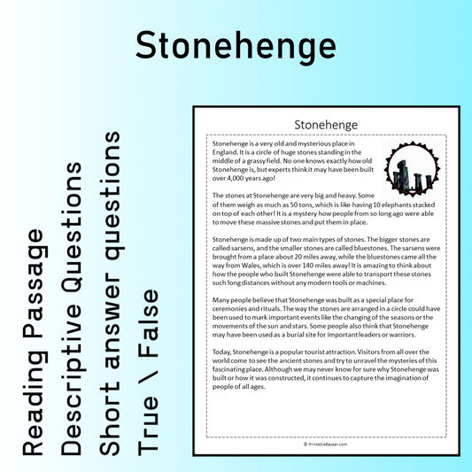Stonehenge | Reading Comprehension Passage Printable Worksheet