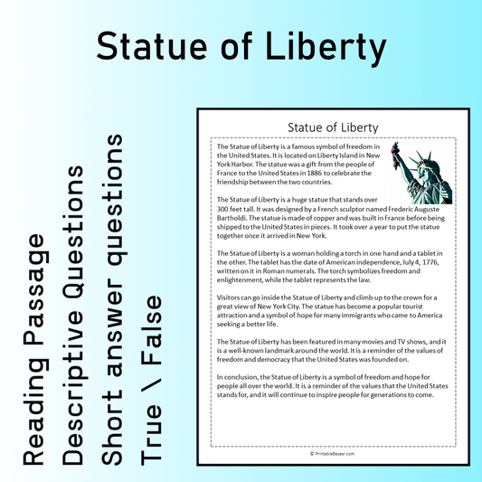 Statue of Liberty | Reading Comprehension Passage Printable Worksheet