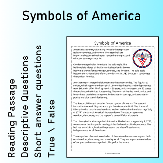 Symbols of America | Reading Comprehension Passage Printable Worksheet