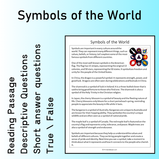 Symbols of the World | Reading Comprehension Passage Printable Worksheet