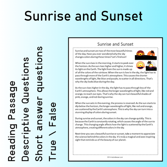 Sunrise and Sunset | Reading Comprehension Passage Printable Worksheet