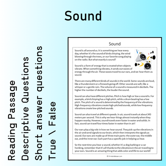 Sound | Reading Comprehension Passage Printable Worksheet