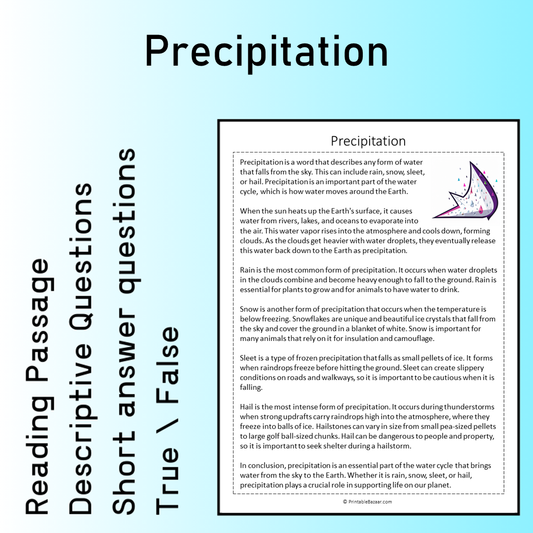 Precipitation | Reading Comprehension Passage Printable Worksheet