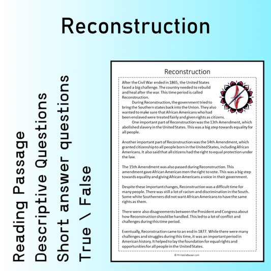 Reconstruction | Reading Comprehension Passage Printable Worksheet