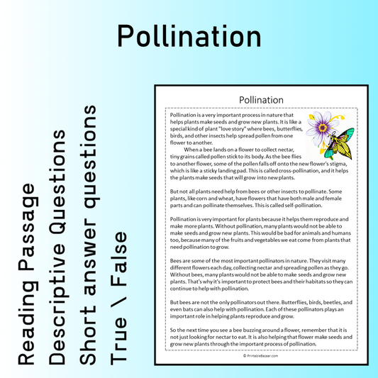 Pollination | Reading Comprehension Passage Printable Worksheet