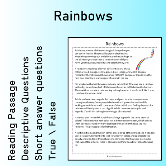 Rainbows | Reading Comprehension Passage Printable Worksheet