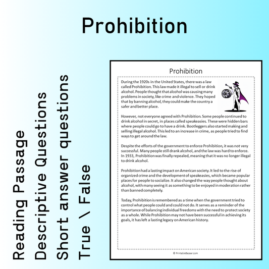 Prohibition | Reading Comprehension Passage Printable Worksheet