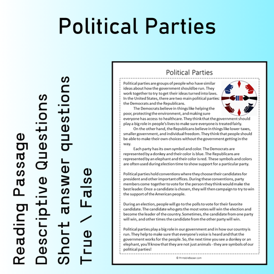 Political Parties | Reading Comprehension Passage Printable Worksheet