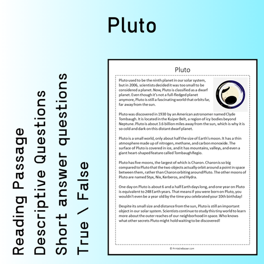 Pluto | Reading Comprehension Passage Printable Worksheet