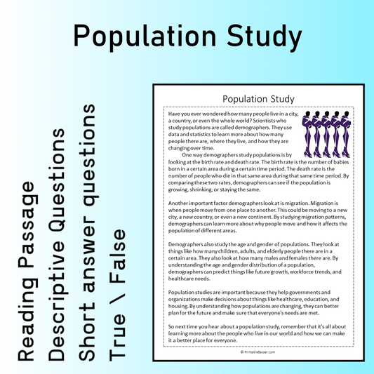 Population Study | Reading Comprehension Passage Printable Worksheet