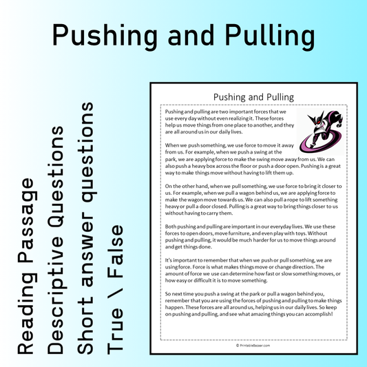 Pushing and Pulling | Reading Comprehension Passage Printable Worksheet