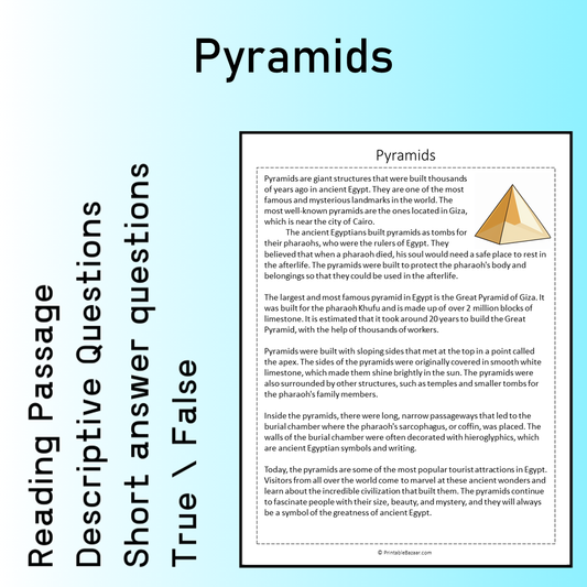 Pyramids | Reading Comprehension Passage Printable Worksheet