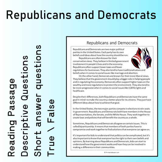 Republicans and Democrats | Reading Comprehension Passage Printable Worksheet