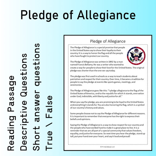 Pledge of Allegiance | Reading Comprehension Passage Printable Worksheet