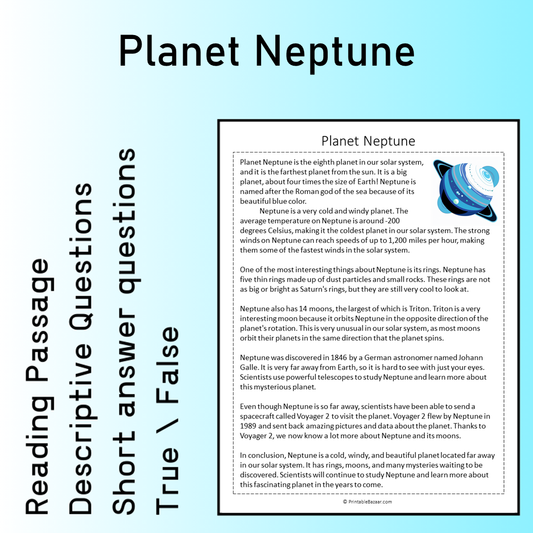Planet Neptune | Reading Comprehension Passage Printable Worksheet