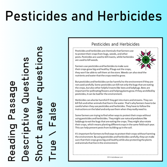 Pesticides and Herbicides | Reading Comprehension Passage Printable Worksheet