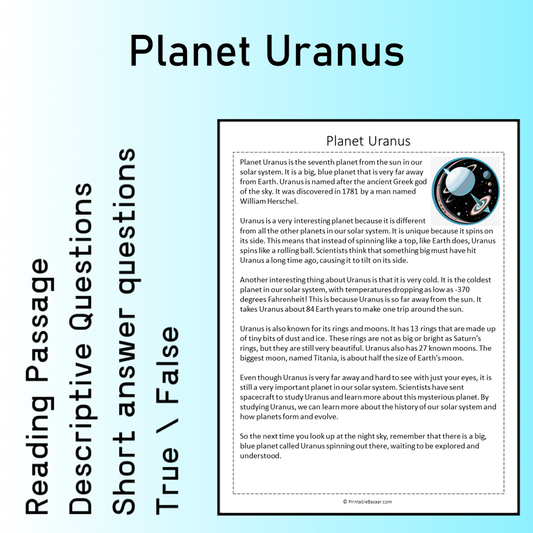 Planet Uranus | Reading Comprehension Passage Printable Worksheet