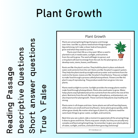 Plant Growth | Reading Comprehension Passage Printable Worksheet