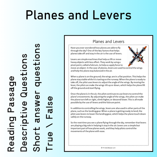 Planes and Levers | Reading Comprehension Passage Printable Worksheet