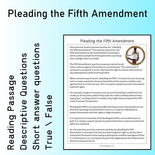 Pleading the Fifth Amendment | Reading Comprehension Passage Printable Worksheet