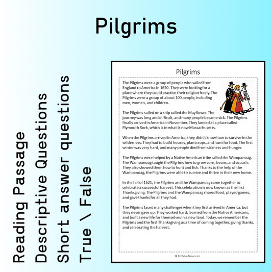 Pilgrims | Reading Comprehension Passage Printable Worksheet